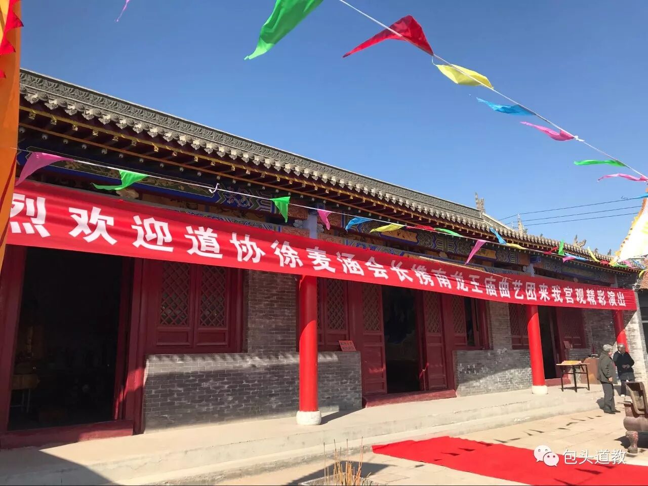 韩祖宫贴出横幅:热烈欢迎道协徐麦涵会长携南龙王庙曲艺团来我宫观精彩演出)