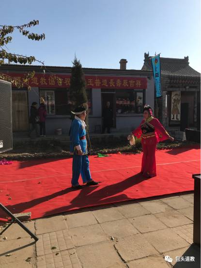 南龙王庙曲艺团上演的精彩大戏(后面的横幅:包头市道教协会祝福侯玉普道长寿辰吉祥)