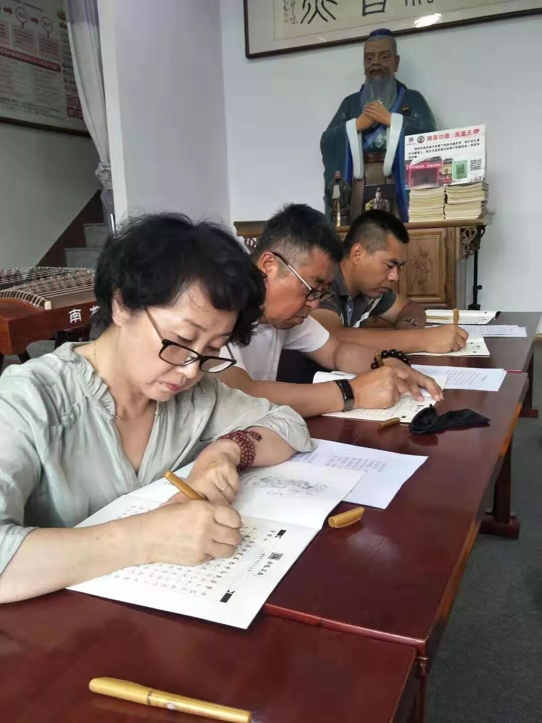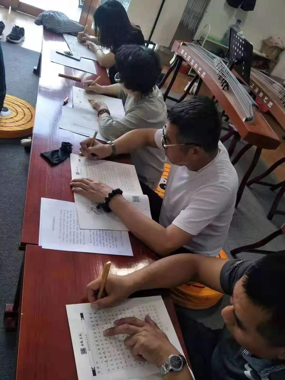 抄经前张国利居士带领大家冥想3分钟,就是端身正坐,静坐3分钟,收摄身、口、意。关闭手机等设备,杜绝其他干扰。